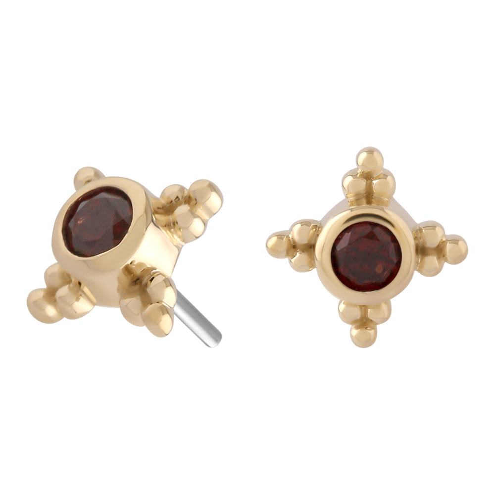 Threadless with titanium pin. Compatible with 18g, 16g, 14g & 12g threadless posts.