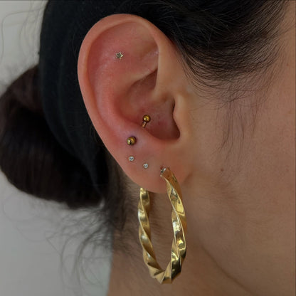 Threadless with titanium pin. Compatible with 18g, 16g, 14g & 12g threadless posts.